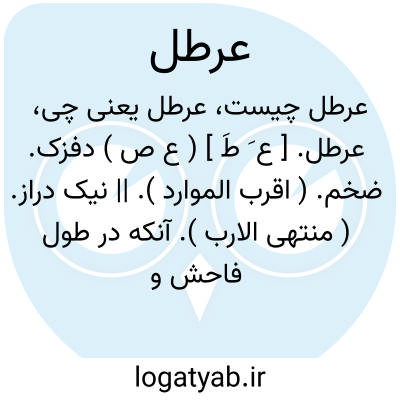 عرطل. [ ع َ طَ ] ( ع ص ) دفزک. ضخم. ( اقرب الموارد ). || نیک دراز. ( منتهی الارب ). آنکه در طول فاحش و افزون باشد. ( از اقرب الموارد ). عَرطَلیل. و رجوع به عرطلیل شود.