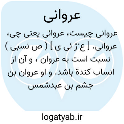 عروانی. [ ع ُرْ نی ی ] ( ص نسبی ) نسبت است به عروان، و آن از انساب کندة باشد. و او عروان بن جشم بن عبدشمس وائل بن الغوث است. و نیز عروان بن کنانةبن خزیمد کنیز برة دختر هراست. و برخی آن را غزوان بن کنانة، باغین معجم وزاء خوانده اند. ( از اللباب فی تهذیب الانساب ).