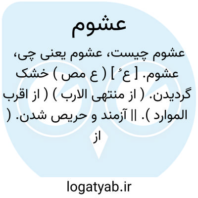 عشوم. [ ع ُ ] ( ع مص ) خشک گردیدن. ( از منتهی الارب ) ( از اقرب الموارد ). || آزمند و حریص شدن. ( از منتهی الارب ). عَشَم. و رجوع به عشم شود.