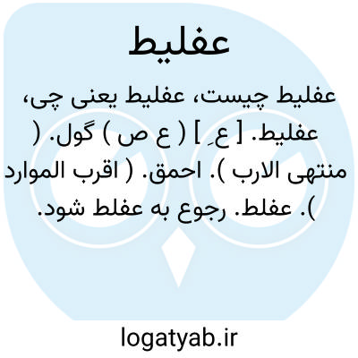 عفلیط. [ ع ِ ] ( ع ص ) گول. ( منتهی الارب ). احمق. ( اقرب الموارد ). عفلط. رجوع به عفلط شود.