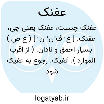 عفنک. [ ع َ ف َن ْ ن َ ] ( ع ص ) بسیار احمق و نادان. ( از اقرب الموارد ). عَفیک. رجوع به عفیک شود.