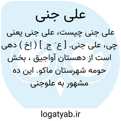 علی جنی. [ ع َ ج ِ ] ( اِخ ) دهی است از دهستان آواجیق، بخش حومه شهرستان ماکو. این ده مشهور به علوجنی شده است. رجوع به علوجنی شود. ( از فرهنگ جغرافیایی ایران ج 4 ).
