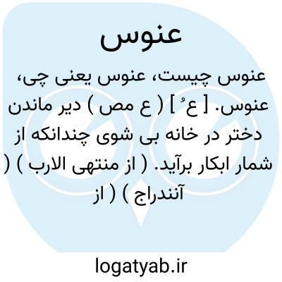 عنوس. [ ع ُ ] ( ع مص ) دیر ماندن دختر در خانه بی شوی چندانکه از شمار ابکار برآید. ( از منتهی الارب ) ( آنندراج ) ( از ناظم الاطباء ) ( از اقرب الموارد ). عِناس. رجوع به عناس شود. || متغیر گردانیدن کلان سالی چهره مردم را. ( منتهی الارب ) ( آنندراج ) ( ناظم الاطباء ). || ( ص، اِ ) ج ِ عانِس. ( منتهی الارب ) ( از اقرب الموارد ). رجوع به عانس شود.