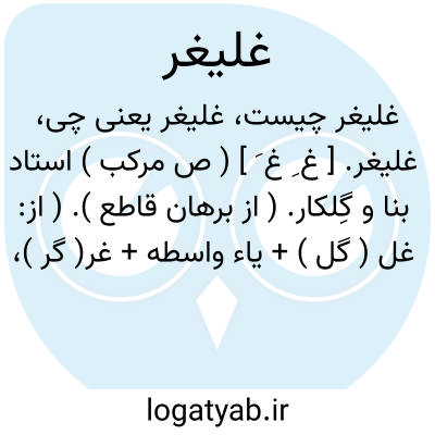 غلیغر. [ غ ِ غ َ ] ( ص مرکب ) استاد بنا و گِلکار. ( از برهان قاطع ). ( از: غل ( گل ) + یاء واسطه + غر( گر )، پسوند شغل ). ( حاشیه برهان قاطع چ معین ). اصل آن گلگر و گلکار بوده، تبدیل یافته است. ( از انجمن آرا ) ( از آنندراج ). غلیگر. ( جهانگیری ) ( برهان قاطع ). گلیگر. ( فرهنگ رشیدی ). رجوع به غلیگر و گلیگر شود.