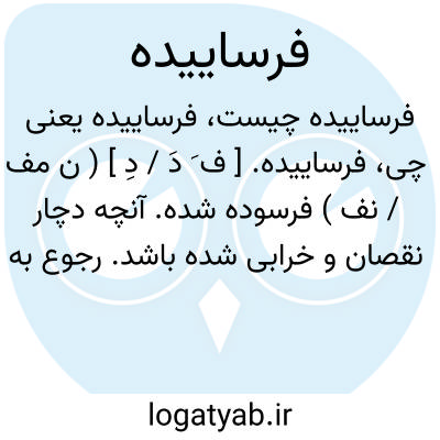 لغت نامه دهخدا فرساییده. [ ف َ دَ / دِ ] ( ن مف / نف ) فرسوده شده. آنچه دچار نقصان و خرابی شده باشد. رجوع به فرساییدن و فرسائیده شود.