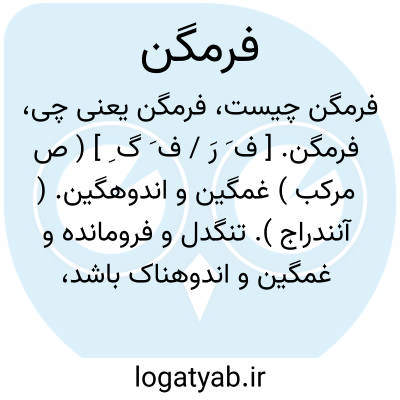 فرمگن. [ ف َ رَ / ف َ گ ِ ] ( ص مرکب ) غمگین و اندوهگین. ( آنندراج ). تنگدل و فرومانده و غمگین و اندوهناک باشد، چه فرم به معنی غم و اندوه و گن به معنی صاحب و خداوند است. ( برهان ). نژند. ( اسدی ). مخفف فرمگین. ( حاشیه برهان چ معین ). رجوع به فَرَم و فرمگین شود.