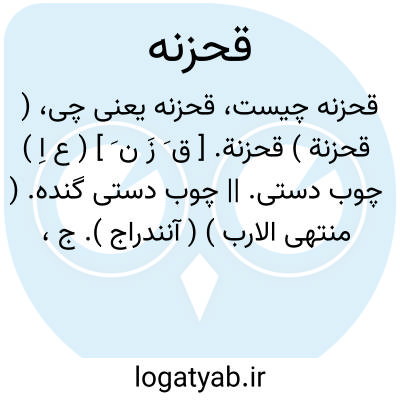 ( قحزنة ) قحزنة. [ ق َ زَ ن َ ] ( ع اِ ) چوب دستی. || چوب دستی گنده. ( منتهی الارب ) ( آنندراج ). ج، قحازن. || ( مص ) افکندن بزدن. ( منتهی الارب ). افکندن و زدن. ( آنندراج ). گویند: ضربه فقحزنه؛ ای صرعه. ( منتهی الارب ). رجوع به قحزله شود.