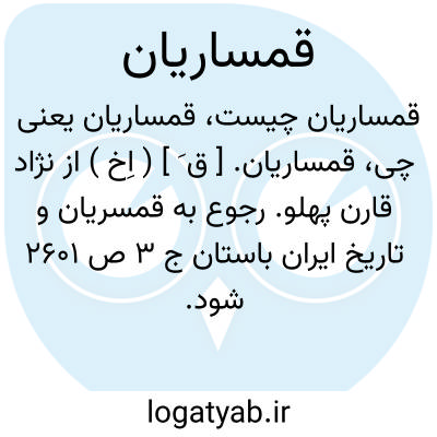 لغت نامه دهخدا قمساریان. [ ق َ ] ( اِخ ) از نژاد قارن پهلو. رجوع به قمسریان و تاریخ ایران باستان ج 3 ص 2601 شود.