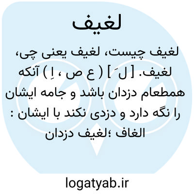 لغت نامه دهخدا لغیف. [ ل َ ] ( ع ص، اِ ) آنکه همطعام دزدان باشد و جامه ایشان را نگه دارد و دزدی نکند با ایشان: الغاف؛لغیف دزدان گردیدن. || خاصه مرد. || نیست و نهانی مرد. ج، لغفاء. ( منتهی الارب ).