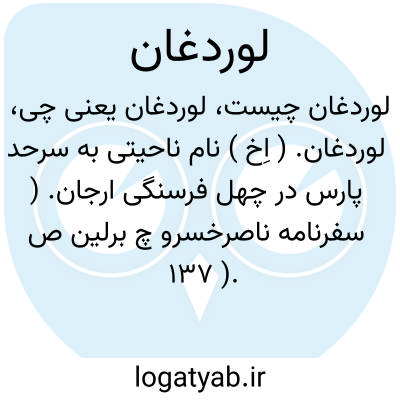لوردغان. ( اِخ ) نام ناحیتی به سرحد پارس در چهل فرسنگی ارجان. ( سفرنامه ناصرخسرو چ برلین ص 137 ). رجوع به لوردجان و لوردگان شود.