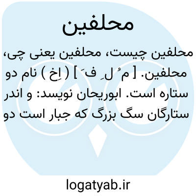 محلفین. [ م ُ ل ِ ف َ ] ( اِخ ) نام دو ستاره است. ابوریحان نویسد: و اندر ستارگان سگ بزرگ که جبار است دو ستاره است نام ایشان محلفین و محنثین؛ ای سوگنددهنده و سوگندشکننده. ( التفهیم ص 105 ). و رجوع به محلفان شود.