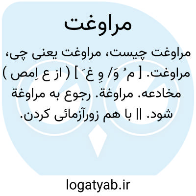 (مُ وَ غَ ) [ ع. مراوغة ] (مص ل. ) ۱ - عیب جویی کردن. ۲ - کشتی گرفتن، زو ر آزمایی کردن. ۳ - یکدیگر را فریب دادن.