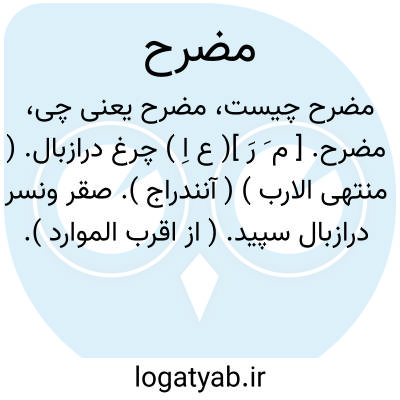 مضرح. [ م َ رَ ]( ع اِ ) چرغ درازبال. ( منتهی الارب ) ( آنندراج ). صقر ونسر درازبال سپید. ( از اقرب الموارد ). چرغ درازبال و عقاب سپید. ( ناظم الاطباء ). و رجوع به مضرحی شود.