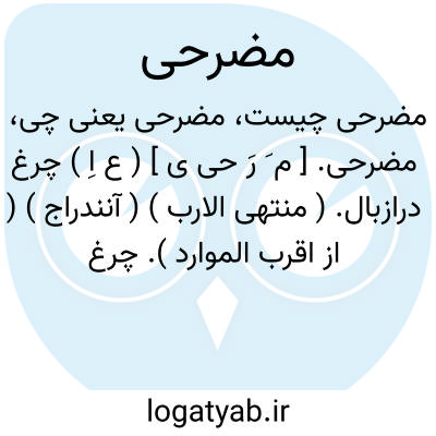 مضرحی. [ م َ رَ حی ی ] ( ع اِ ) چرغ درازبال. ( منتهی الارب ) ( آنندراج ) ( از اقرب الموارد ). چرغ درازبال و عقاب سپید. ( ناظم الاطباء ). کرکس سپید. ( دهار چ بنیاد ). و رجوع به مضرح شود. || ( ص ) سپید از هر چیزی. ( منتهی الارب ) ( از اقرب الموارد ) ( آنندراج ) ( ناظم الاطباء ). || دراز. ( منتهی الارب ) ( آنندراج ). دراز از هر چیزی. ( ناظم الاطباء ). || مهتر بزرگ. ( منتهی الارب ) ( آنندراج ) ( از اقرب الموارد ) ( ناظم الاطباء ). || مردی نژاده و از خاندان کهن. ( از اقرب الموارد ).