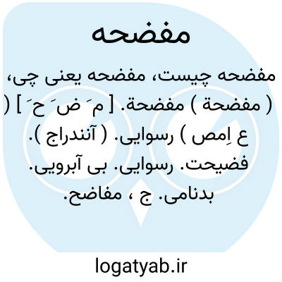( مفضحة ) مفضحة. [ م َ ض َ ح َ ] ( ع اِمص ) رسوایی. ( آنندراج ). فضیحت. رسوایی. بی آبرویی. بدنامی. ج، مفاضح. ( از ناظم الاطباء ).