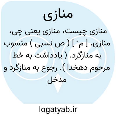 منازی. [ م َ ] ( ص نسبی ) منسوب به منازگرد. ( یادداشت به خط مرحوم دهخدا ). رجوع به منازگرد و مدخل بعد شود.