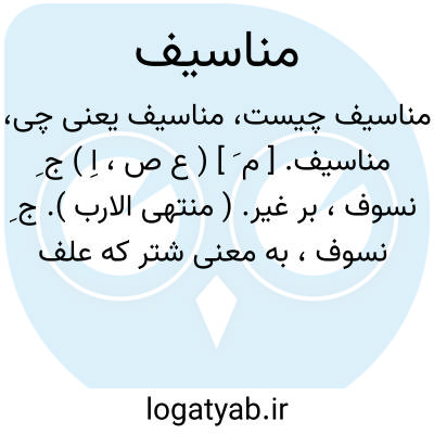 مناسیف. [ م َ ] ( ع ص، اِ ) ج ِ نسوف، بر غیر. ( منتهی الارب ). ج ِ نسوف، به معنی شتر که علف را از بیخ برکند. ( آنندراج ) ( از اقرب الموارد ): ابل مناسیف؛ شترانی که علف را از بیخ برکنند. ( ناظم الاطباء ).