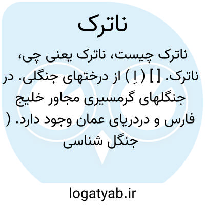 ناترک. [ ] ( اِ ) از درختهای جنگلی. در جنگلهای گرمسیری مجاور خلیج فارس و دردریای عمان وجود دارد. ( جنگل شناسی ج 2 ص 133 و134 ).