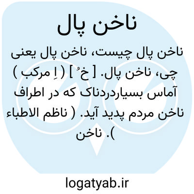 ناخن پال. [ خ ُ ] ( اِ مرکب ) آماس بسیاردردناک که در اطراف ناخن مردم پدید آید. ( ناظم الاطباء ). ناخن خاره. ( از برهان قاطع ). درد ناخن. کژدمه. کژدمک. عقربک. گوشه. داحوس. داحس. کرمیشک. ( یادداشت مؤلف ). رجوع به ناخن خواره شود. || خلال گونه ای که بدان بن ناخن ها پاک کنند. ( یادداشت مؤلف ).