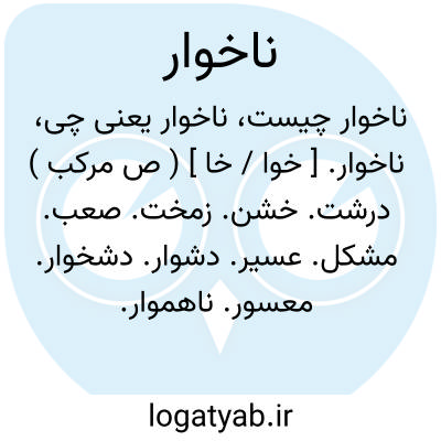 ناخوار. [ خوا / خا ] ( ص مرکب ) درشت. خشن. زمخت. صعب. مشکل. عسیر. دشوار. دشخوار. معسور. ناهموار. ناهنجار. غلیظ. غلاظ.عنیف. منکر. ( یادداشت مؤلف ). || جعد. آشفته. وژگال. ( یادداشت مؤلف ). || ( اِ ) نام گونه ای درم بوده است در سلابور هند. ( حدودالعالم ).