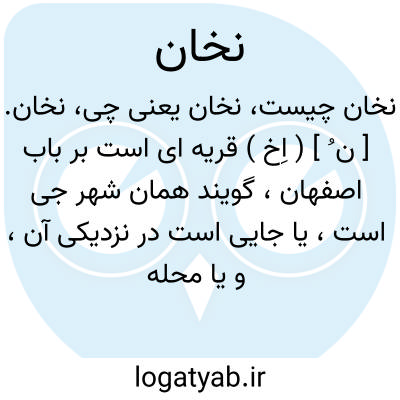 نخان. [ ن ُ ] ( اِخ ) قریه ای است بر باب اصفهان، گویند همان شهر جی است، یا جایی است در نزدیکی آن، و یا محله ای است از آن. و بدان منسوب است ابوجعفر زیدبن بنداربن زند نخانی فقیه اصفهانی متوفی به سال 273 هَ. ق. ( از معجم البلدان ).