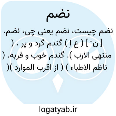 نضم. [ ن َ ] ( ع اِ ) گندم گرد و پر. ( منتهی الارب ). گندم خوب و فربه. ( ناظم الاطباء ) ( از اقرب الموارد )( از متن اللغة ). واحد آن نضمة است. ( از متن اللغة ).