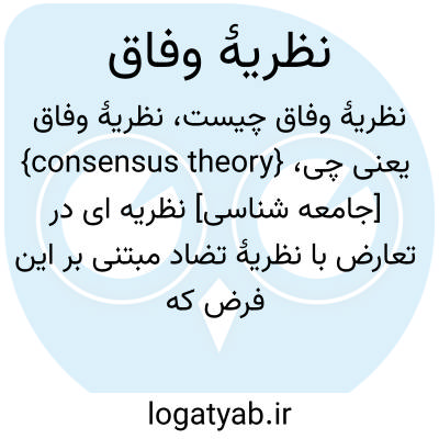 {consensus theory} [جامعه شناسی] نظریه ای در تعارض با نظریۀ تضاد مبتنی بر این فرض که همواره در جامعه نوعی وفاق اجتماعی دربارۀ ارزش ها و هنجارها وجود دارد