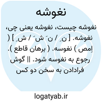 نغوشه. [ ن ِ / ن َ ش َ / ش ِ ] ( اِمص ) نغوسه. ( برهان قاطع ). رجوع به نغوسه شود. || گوش فرادادن به سخن دو کس که با هم آهسته حرف میزنند. ( برهان قاطع ). به معنی گوش فراداشتن که بینند چه سخن می گذرد. ( فرهنگ خطی ). با نیوشه قیاس شود. ( از حاشیه برهان قاطع چ معین ):