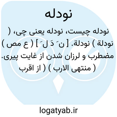 ( نودلة ) نودلة. [ ن َ دَ ل َ ] ( ع مص ) مضطرب و لرزان شدن از غایت پیری. ( منتهی الارب ) ( از اقرب الموارد ) ( از متن اللغة ) ( ناظم الاطباء ) ( آنندراج ). || فروهشته گردیدن هر دو خصیة. ( منتهی الارب ) ( آنندراج ) ( از متن اللغة ). و نعت از آن منودل است. ( منتهی الارب ) ( از متن اللغة ).