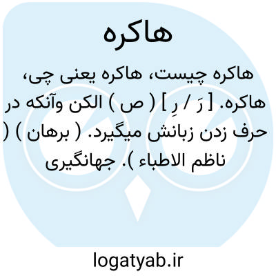 هاکره. [ رَ / رِ ] ( ص ) الکن وآنکه در حرف زدن زبانش میگیرد. ( برهان ) ( ناظم الاطباء ). جهانگیری نویسد: هاکره و هاکله، کسی را گویند که در سخن گفتن زبانش میگرفته باشد و آن را به تازی الکن خوانند. مؤلف تاریخ معجم نظم نموده: