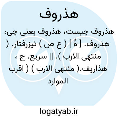 هذروف. [ هَُ ] ( ع ص ) تیزرفتار. ( منتهی الارب ). || سریع. ج، هذاریف.( منتهی الارب ) ( اقرب الموارد ). رجوع به هذاریف شود.
