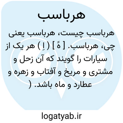 هرباسب. [ هََ ] ( اِ ) هر یک از سیارات را گویند که آن زحل و مشتری و مریخ و آفتاب و زهره و عطارد و ماه باشد. ( برهان ). رجوع به هرباسپ شود.