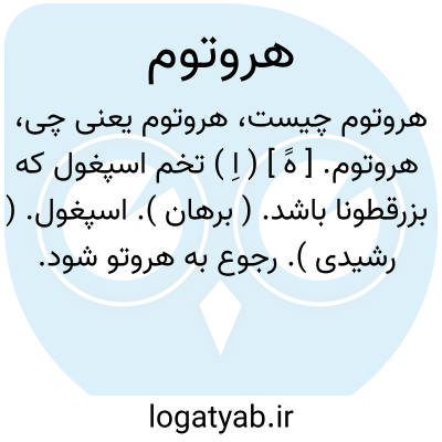 هروتوم. [ هََ ] ( اِ ) تخم اسپغول که بزرقطونا باشد. ( برهان ). اسپغول. ( رشیدی ). رجوع به هروتو شود.