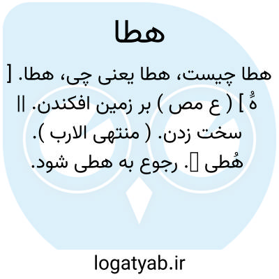 هطا. [ هَُ ] ( ع مص ) بر زمین افکندن. || سخت زدن. ( منتهی الارب ). هُطی ̍. رجوع به هطی شود.