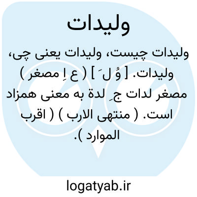 ولیدات. [ وُ ل َ ] ( ع اِ مصغر ) مصغر لدات ج ِ لدة به معنی همزاد است. ( منتهی الارب ) ( اقرب الموارد ).