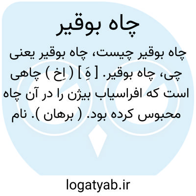 چاه بوقیر. [ هَِ ] ( اِخ ) چاهی است که افراسیاب بیژن را در آن چاه محبوس کرده بود. ( برهان ). نام چاهی که افراسیاب بیژن را در آن بند کرده بود. ( آنندراج ). چاه ارژنگ. رجوع به چاه بیجن و چاه بیژن شود.