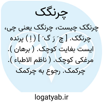 چرنگک. [ چ َ رَ گ َ ] ( اِ ) پرنده ایست بغایت کوچک. ( برهان ). مرغکی کوچک. ( ناظم الاطباء ). چرکمک. رجوع به چرکمک شود.