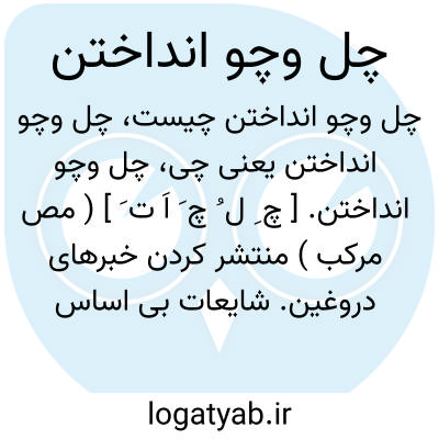 چل وچو انداختن. [ چ ِ ل ُ چ َ اَ ت َ ] ( مص مرکب ) منتشر کردن خبرهای دروغین. شایعات بی اساس پراکندن. جعل و نشر خبرکردن. هو انداختن. به دروغ خبری در افواه پراکندن. و رجوع به چل وچو و چل وچو افتادن و چل وچوانداز شود.