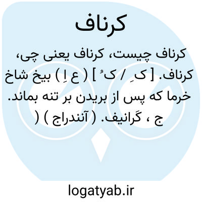 کرناف. [ ک ِ / ک ُ ] ( ع اِ ) بیخ شاخ خرما که پس از بریدن بر تنه بماند. ج، کَرانیف. ( آنندراج ) ( ناظم الاطباء ) ( از اقرب الموارد ). واحد آن کرنافه است. ( از اقرب الموارد ) ( آنندراج ).