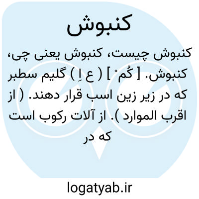 کنبوش. [ کُم ْ ] ( ع اِ ) گلیم سطبر که در زیر زین اسب قرار دهند. ( از اقرب الموارد ). از آلات رکوب است که در پشت کفل اسب اندازند و آن را انواع مختلف است که با نقره و یا زر و جز اینها آرایند و مخصوص قضات و اهل علم است. ( از صبح الاعشی ج 2 ص 129 ). روپوشی که روی کفل اسبان سواری می گذارند. ج، کنابیش: کنابیش الزرکش. ( از دزی ج 2 ص 492 ).