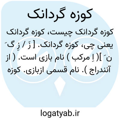 کوزه گردانک. [ زَ / زِ گ َ ن َ ]( اِ مرکب ) نام بازی است. ( از آنندراج ). نام قسمی ازبازی. کوزه گردان. ( ناظم الاطباء ). جدارک. جدانک. ( ازبرهان ). و رجوع به کوزه گردان، جدارک و جدانک شود.