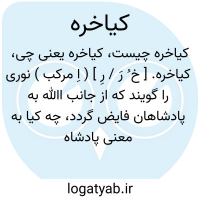 کیاخره. [ خ ُ رَ / رِ ] ( اِ مرکب ) نوری را گویند که از جانب اﷲ به پادشاهان فایض گردد، چه کیا به معنی پادشاه و خره نوری باشد از جانب خدای تعالی فایض بر بندگان خود که به سبب آن ریاست کنند. و با واو معدوله هم آمده است که کیاخوره باشد. ( برهان ). نوری است که از جانب خدا بر روح پادشاهان نازل شود که بدان حشمت و شوکت و قدرت و عدالت حاصل نمایند... ( آنندراج ) ( انجمن آرا ). رجوع به کیاخوره شود.