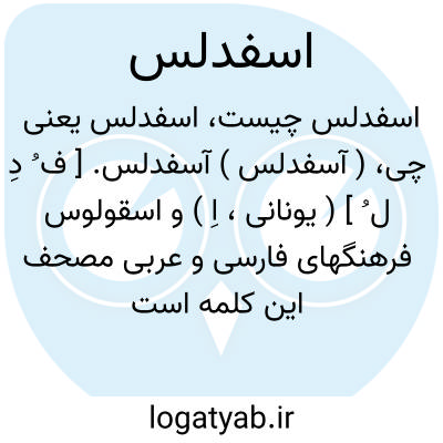 ( آسفدلس ) آسفدلس. [ ف ُ دِ ل ُ ] ( یونانی، اِ ) و اسقولوس فرهنگهای فارسی و عربی مصحف این کلمه است، و این بته ای است با گلهای زیبا که زینت را در بوستانها نشانند و از ریشه آن سریش کنند. و اسراش، خنثی، سرش، برواق مرادف آن است.