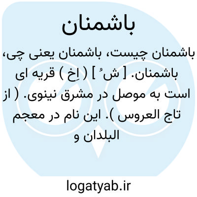 باشمنان. [ ش ُ ] ( اِخ ) قریه ای است به موصل در مشرق نینوی. ( از تاج العروس ). این نام در معجم البلدان و مراصد الاطلاع بصورت باشمنایا ضبط شده است. در حالیکه یاقوت صاحب معجم البلدان منسوب بدان را باشمنانی ضبط میکند. رجوع به باشمنایا شود.