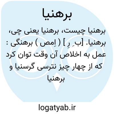 برهنیا. [ب ِ رِ ] ( اِمص ) برهنگی: عمل به اخلاص آن وقت توان کرد که از چهار چیز نترسی گرسنیا و برهنیا ودرویشی و خواری. ( کیمیای سعادت ). یکی از انبیا بیست سال به گرسنیا و تشنیا و برهنیا و بلاء... بسیار مبتلی بود و دعا می کرد اجابت نمی بود. ( کیمیای سعادت ).