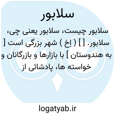 سلابور. [ ] ( اِخ ) شهر بزرگی است [ به هندوستان ] با بازارها و بازرگانان و خواسته ها، پادشائی از آن رای قندج است. و درمهای ایشان گوناگون است که داد و ستدشان بر اوست چون باراده و ناخوار و شبانی و کبهمره و کیموان و کوده و هریکی را وزنی دیگر است. و اندر او بتخانه های بسیار است و دانشمندان ایشان بر نهی اند و شکر و پانیذ و انگبین و جوز هندی و گاو و گوسپند و اشتر سخت بسیار است. ( حدود العالم ).