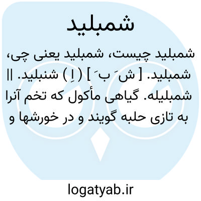 شمبلید. [ ش َ ب َ ] ( اِ ) شنبلید. || شمبلیله. گیاهی مأکول که تخم آنرا به تازی حلبه گویند و در خورشها و اشکنه ها تازه و خشک آنرا داخل می کنند. ( ناظم الاطباء ). شمبلیت. ( از غیاث ) ( از آنندراج ). رجوع به شمبلیله و شمبلیت شود.