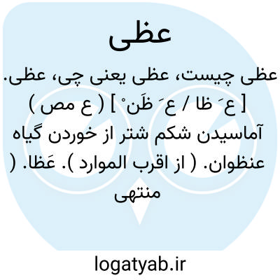 عظی. [ ع َ ] ( ع ص ) شتر آماسیده شکم از خوردن گیاه عنظوان. ( از اقرب الموارد ) ( از منتهی الارب ). عَظ. عَظیان. و رجوع به عظ و عظیان شود.