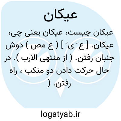 عیکان. [ ع َ ی َ ] ( ع مص ) دوش جنبان رفتن. ( از منتهی الارب ). در حال حرکت دادن دو منکب، راه رفتن. ( از اقرب الموارد ).