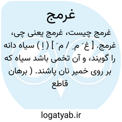 غرمج. [ غ َ م ِ / م َ ] ( اِ ) سیاه دانه را گویند، و آن تخمی باشد سیاه که بر روی خمیر نان پاشند. ( برهان قاطع ). در فرهنگ فخر قواس به کسر میم به معنی سیاه دانه گفته و این بیت را که قائلش معلوم نیست شاهد آورده: